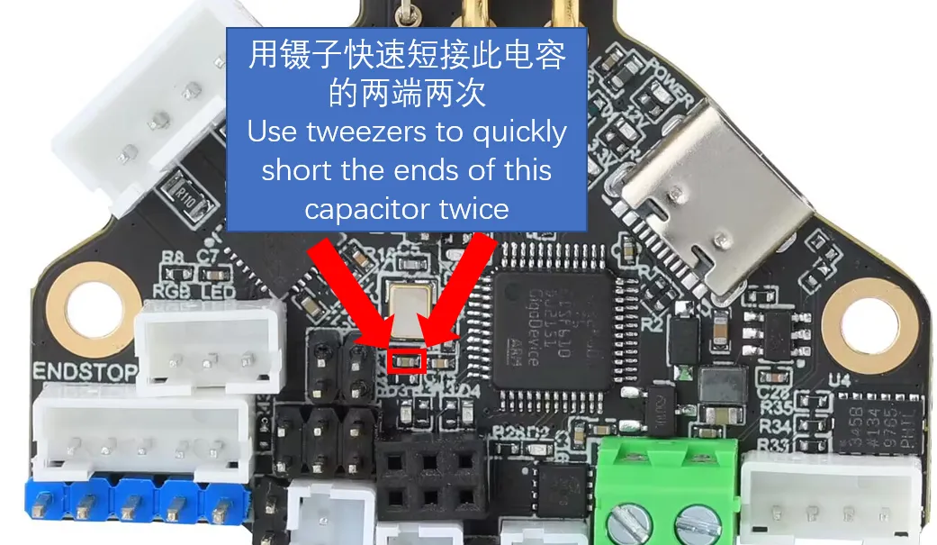Application : CanBootapparaît et la LED du firmware clignote. À ce moment-là, vous devez flasher le firmware Klipper, sinon la connexion sera impossible !!! -